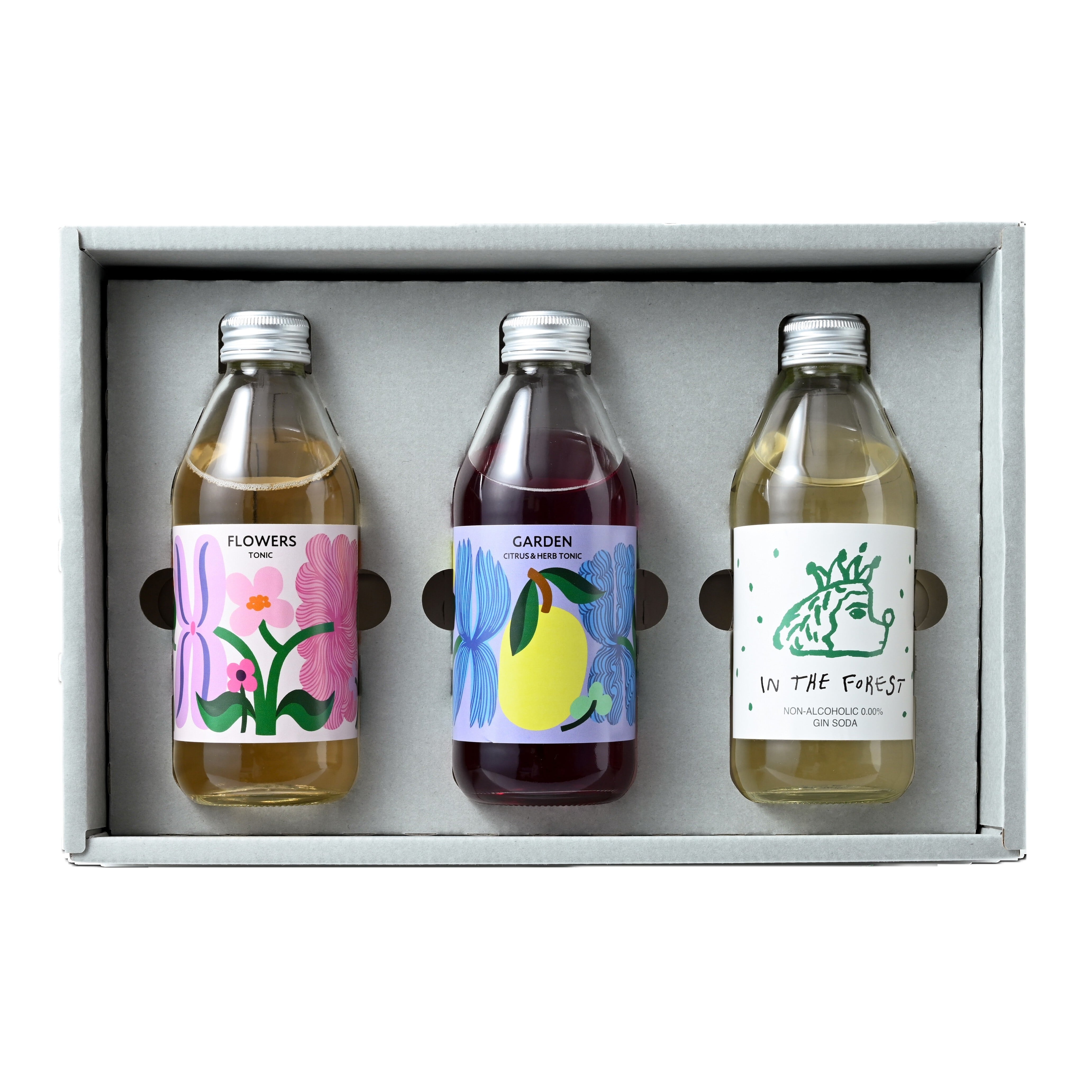 このギフトセットでは、ノンアルコールのジンソーダと、自家製ボタニカルウォーターを使ったクラフトトニック(炭酸飲料)を詰め合わせました。